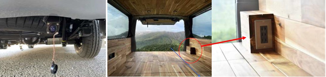 リアバンパー部分から外部入力可能な電源ポート付で、付属のAC電源ケーブルをつなぐと室内コンセントからAC電源の取り出しが可能です。