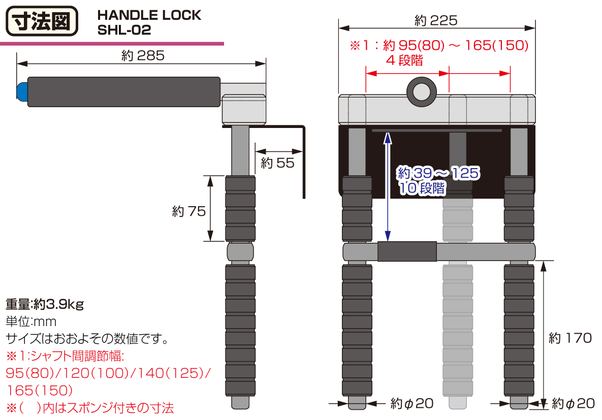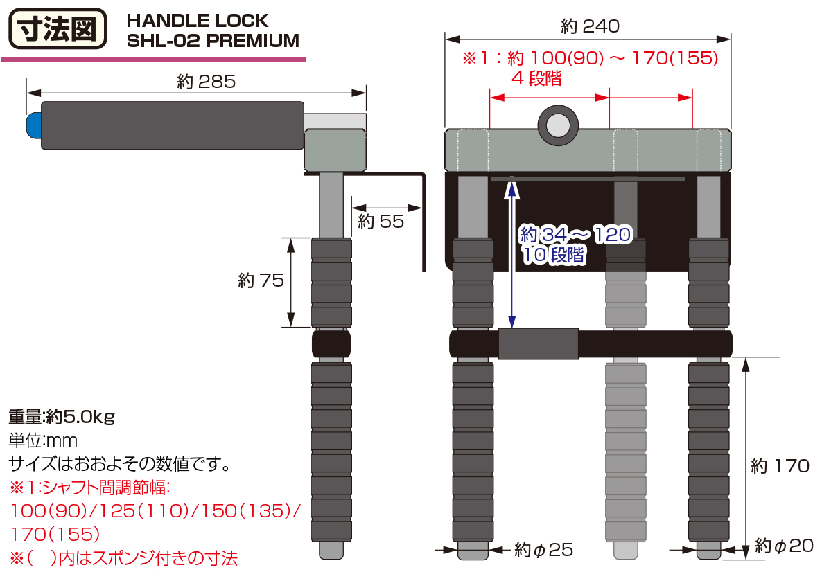 ハンドルスポーク幅(スポンジ含):4段階(約80/100/125/150mm)