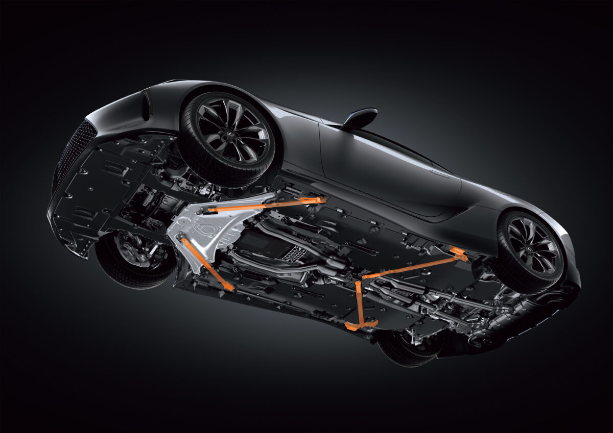 - LC500に床下ブレースを採用し、より高いボディねじり剛性を確保
