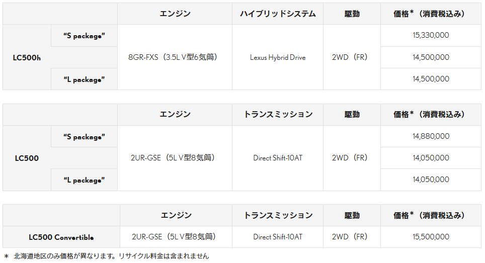 LEXUS、「LC」を一部改良