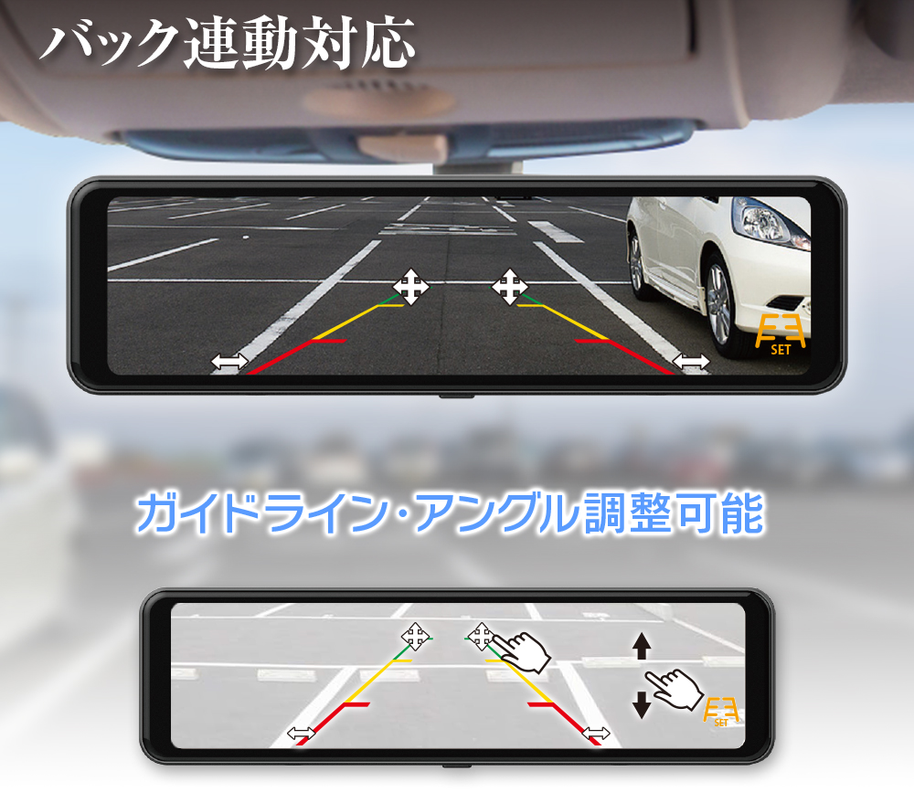 純正ミラーに被せるだけで取り付けられるハイスペック10.88インチデジタルミラー。