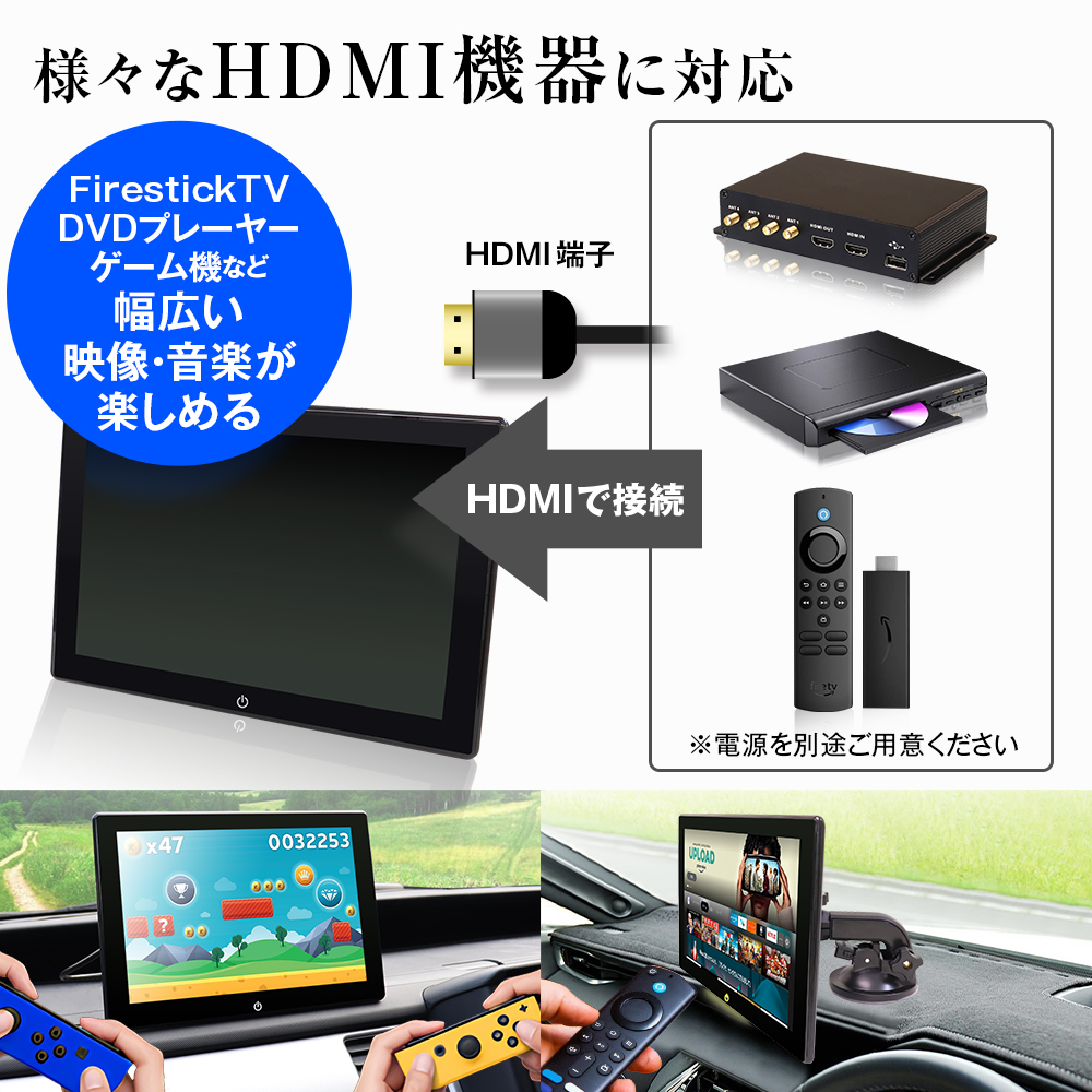 HDMI・RCA端子装備で、FirestickTV/DVDプレーヤー/ゲーム機なども楽しめます。