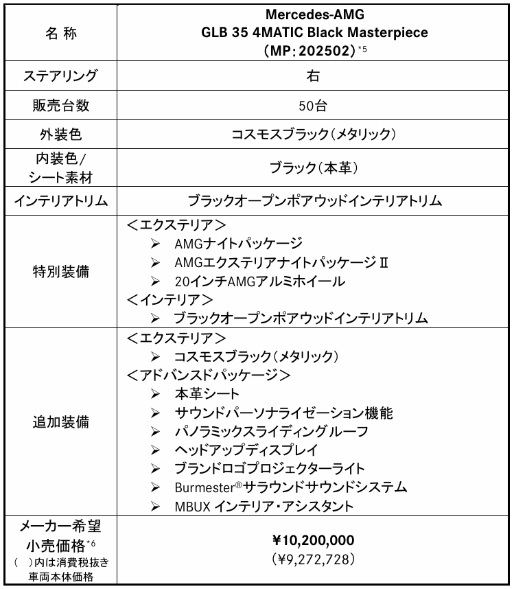 「Mercedes-AMG GLB 35 4MATIC Black Masterpiece」を限定発売