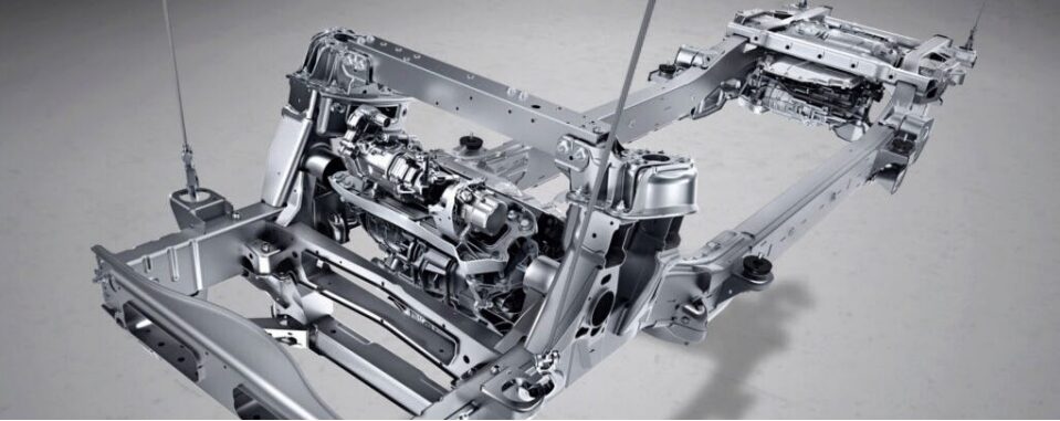 バッテリーを強固に守る専用のアンダーボディプロテクションを装備。カーボンファイバーを含む様々な素材を組み合わせた厚さ 26mm の頑丈なアンダーボディパネルは、50 を越えるスチールボルトによってラダーフレームに固定されています。