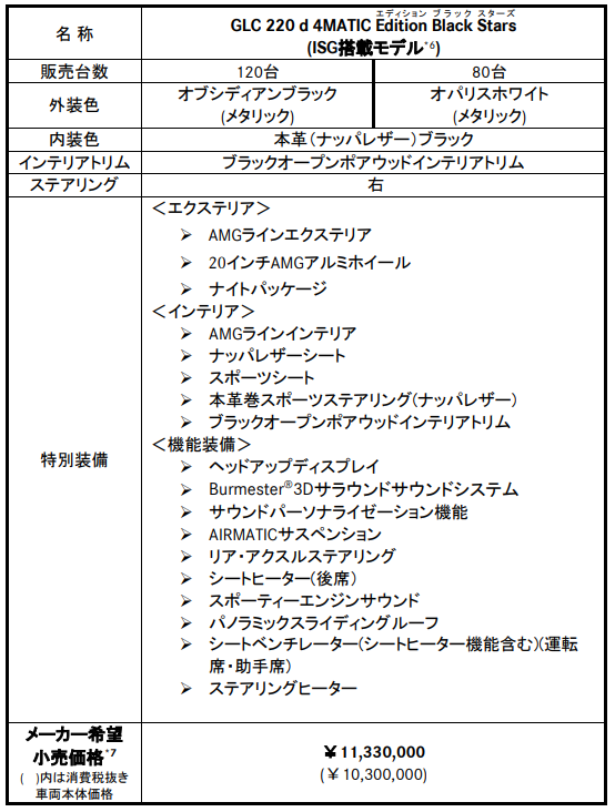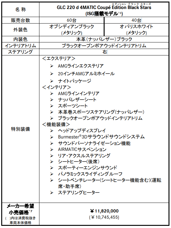 (GLC Edition Black Stars 全国限定 合計 200 台3、GLC Coupé Edition Black Stars 全国 限定 合計 100 台4 )