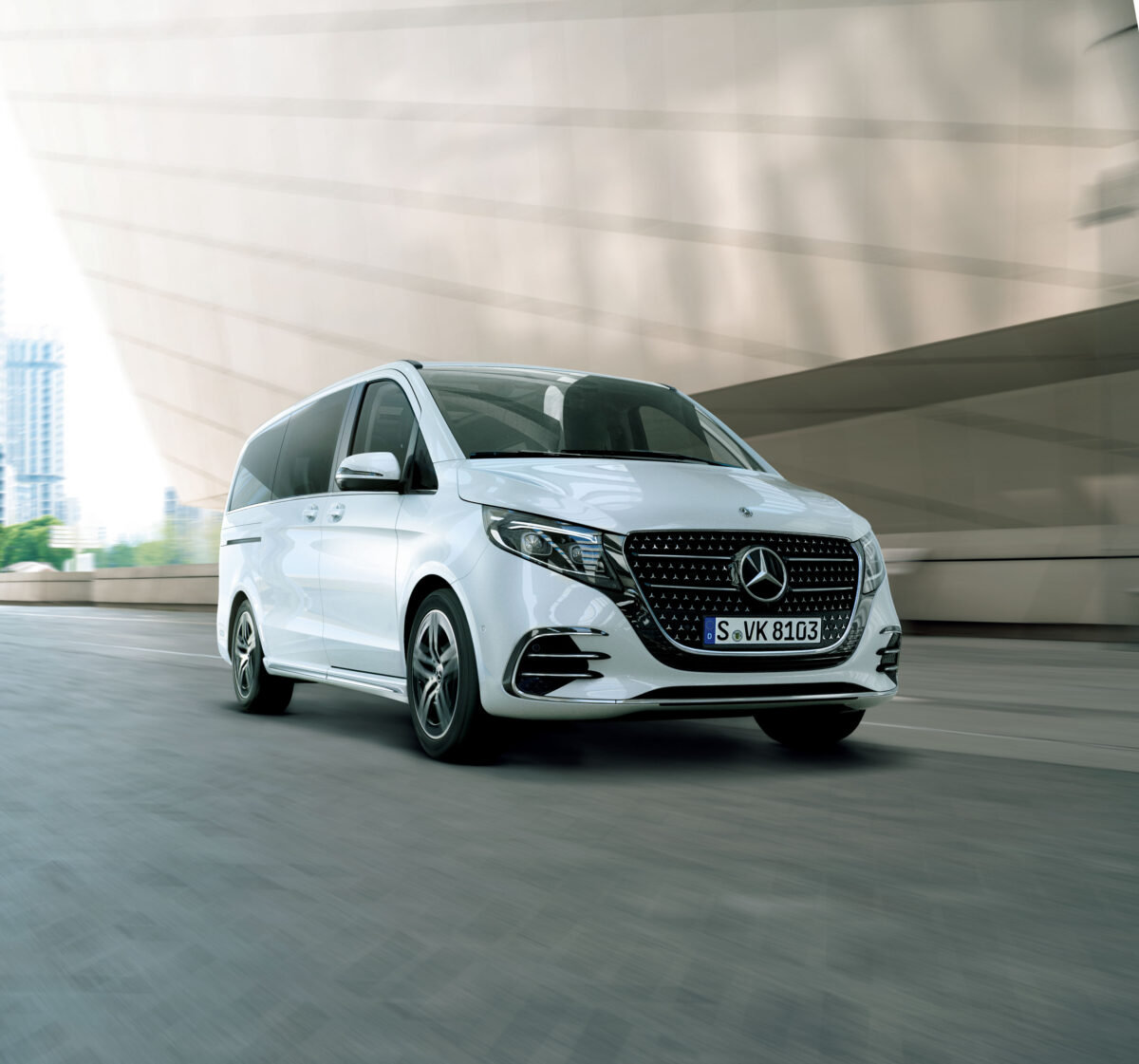 1998年に欧州のミニバンとして初めて日本に導入された「Vクラス」は、ワイドでスクエアなスタイリングと広く上質な室内空間にアレンジ自在なシートを備え、プレミアムミニバンというセグメントを創出しました。その後も、2003年、2015年のフルモデルチェンジを経て、7名乗車のシートレイアウトや左右両側の電動スライドドア、3点式シートベルト一体型のシートや自由度が高いシートアレンジが可能なシートレイアウト、FR(フロントエンジン・後輪駆動)レイアウト、対話型インフォテインメントシステム「MBUX(メルセデス・ベンツ ユーザーエクスペリエンス)」の第2世代へのアップデート、「メルセデス・ベンツのミニバン」の名に相応しい快適性と機能性を備え、日本のお客様のニーズにあわせた装備や専用アクセサリーの拡充を図り、累計販売台数約3万台を達成したロングセラーモデルです。