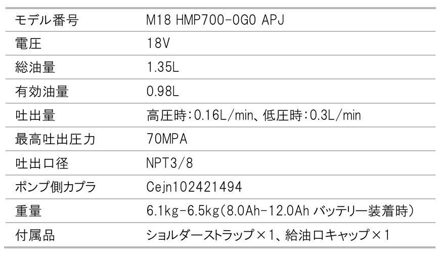 ミルウォーキーツール・ジャパン合同会社(本社:東京都板橋区、ゼネラルマネージャー:林琢磨)はM18シリーズの新たなラインアップとして「M18 小型電動油圧式ポンプ(単動式)」(モデル番号:M18 HMP700-0G0 APJ)を、3月3日(月)より新発売いたします。