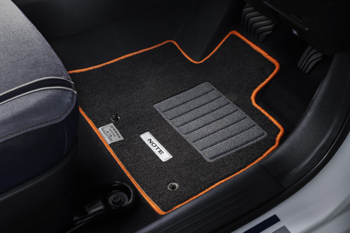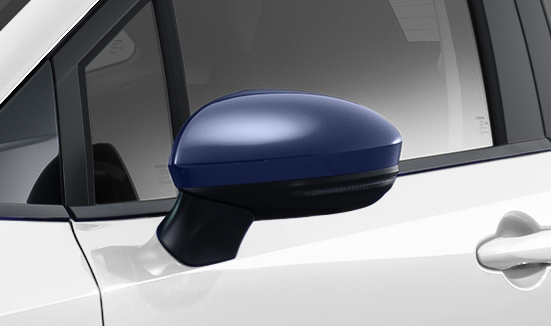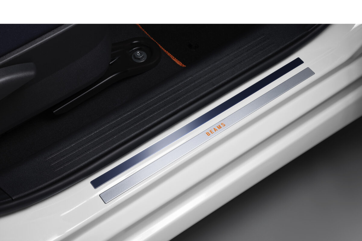 • フロントグリルやドアミラー、アルミホイール、ボディサイド、フロアカーペット*2には、一目でビームスとわかるオレンジや、コンセプトカーのエッセンスであるデニムカラーのネイビーを基調としたさりげないアクセントを取り入れています。