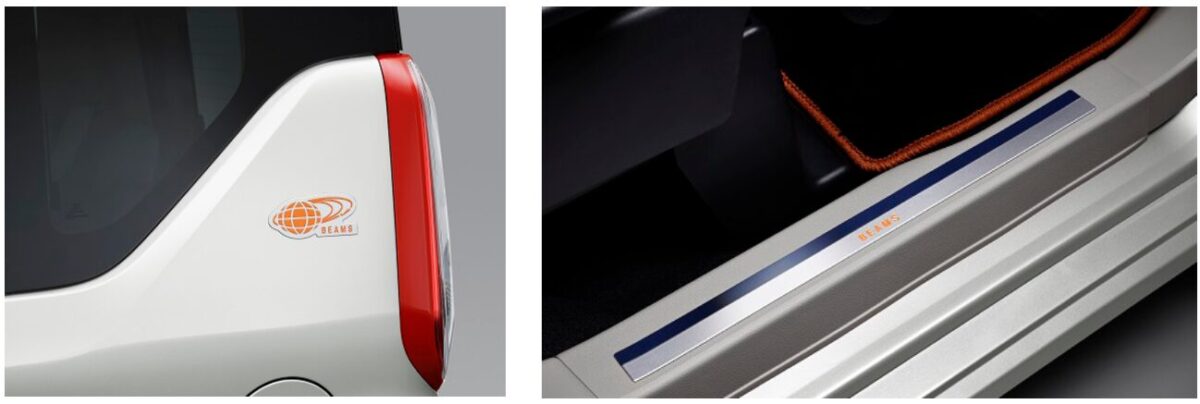 • インテリアではステアリング*3とドア開口部の足元、エクステリアではボディサイド後方とバックドアにビームスのロゴを配しています。