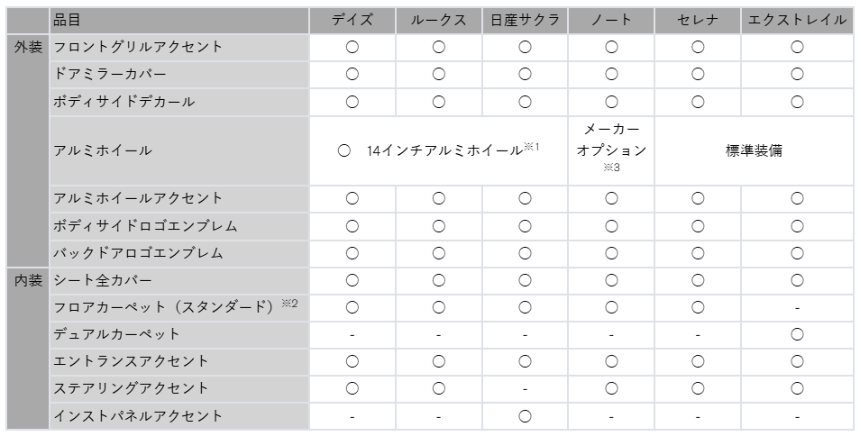 「日産サクラ」「デイズ」「ルークス」「ノート」「セレナ」「エクストレイル」に設定し、限定販売