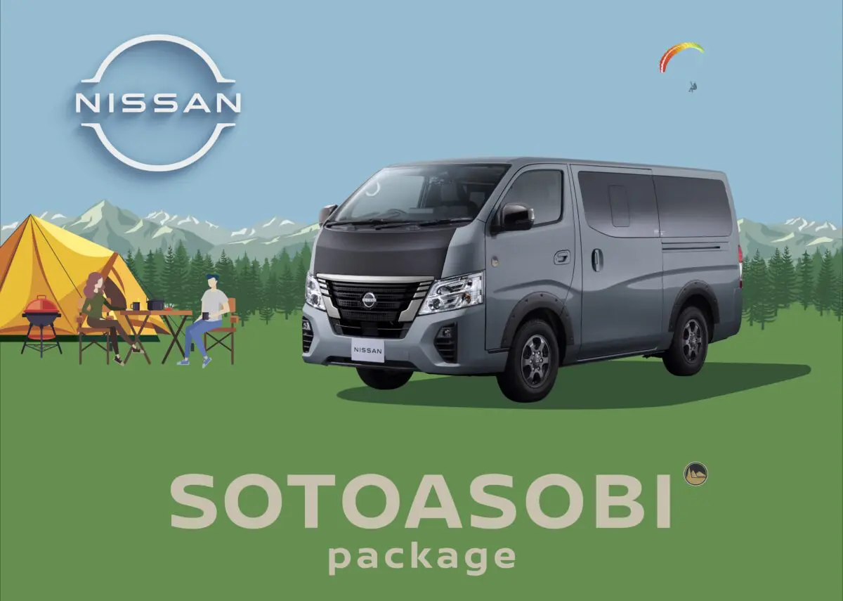 日産自動車株式会社は、「キャラバン」をアウトドアイメージにカスタマイズする新アクセサリーパッケージ「SOTOASOBIパッケージ」を2025年8月25日より発売すると発表した。