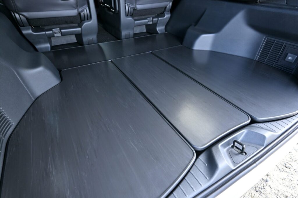 ベルファイア・アルファードの純正ラゲッジスペース下収納空間を活かせるようにフロアパネルは分割タイプになっています。パネル本体はボディへの加工なく置くだけタイプになります。
