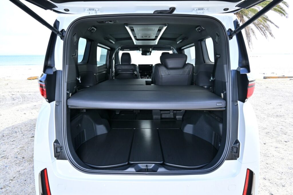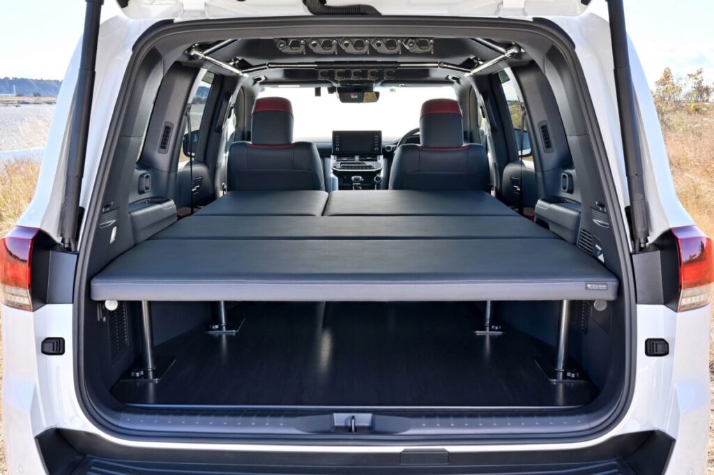 内装レイアウトは、純正サードシートを取外し乗車定員を4名に変更することでラゲージスペースを確保。また、積載容量を減らさないよう、トリム形状に沿ったベッドフレームを設計している。ベッドマットは最大全長210cm(最大幅約140cm)の展開を可能にし、マット表皮は専用レザーを使用し上質なインテリアに沿ったデザインに仕上げられている。ブースでは、ESベッドシステムを搭載したトヨタランドクルーザー300も展示される予定だ。普段使いも車中泊も快適に過ごせる車両をこの機会に見に訪れてみてはいかがだろうか。