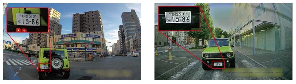 約200万画素の高感度フルHD録画に対応。走行車両のナンバープレートの文字までくっきりと記録します。