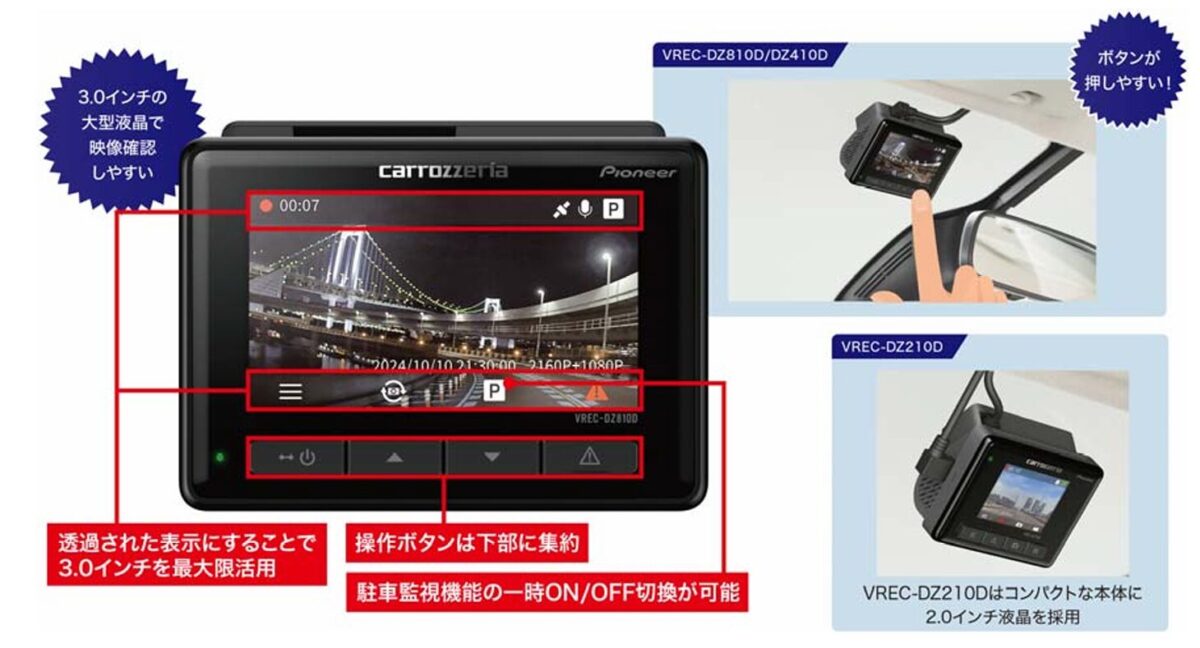 高精細4K録画対応の高機能タイプなど、2 カメラタイプのカロッツェリア ドライブレコーダー3機種を発売
