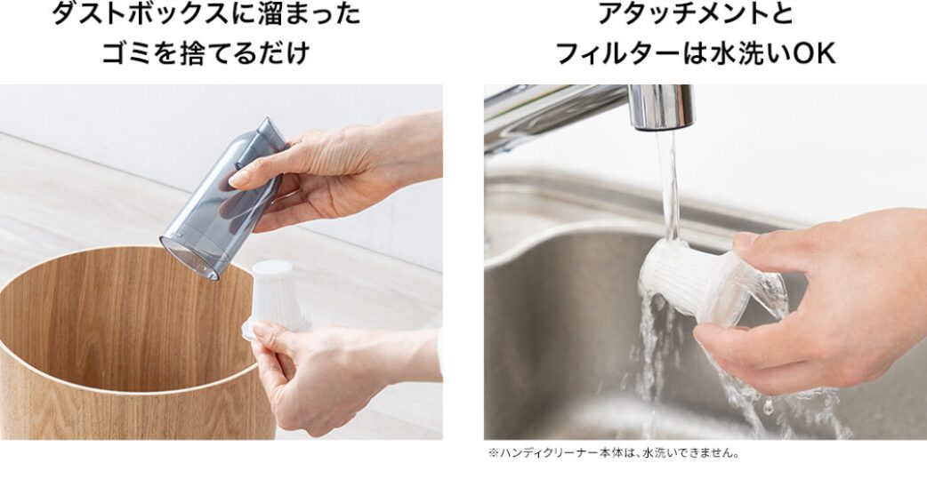 アタッチメントとフィルターは水洗い可能で、清潔に保つことができます。ダストボックスの取り外しも簡単なので、ゴミを捨てる手間も省けます。いつでも快適な状態で使用できます。