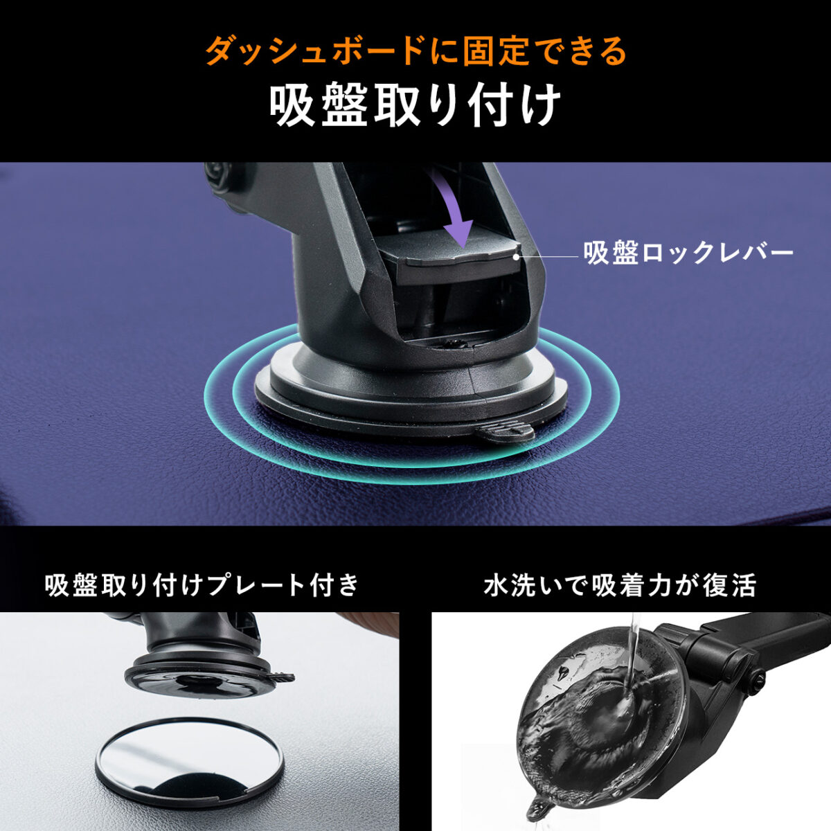 200-CAR098は、粘着性のあるゲル素材で、細かい凹凸のあるダッシュボードに直接取り付けることができます。