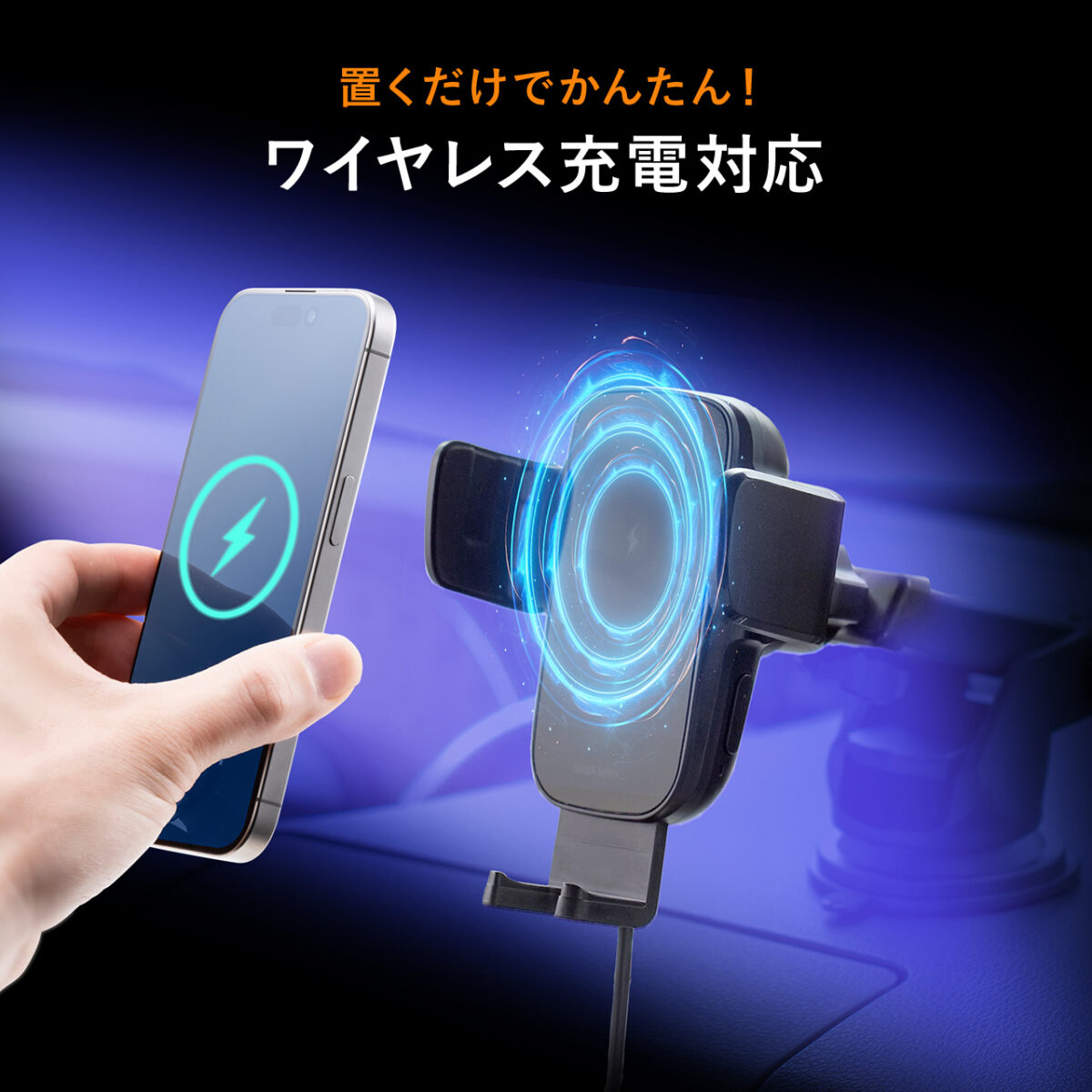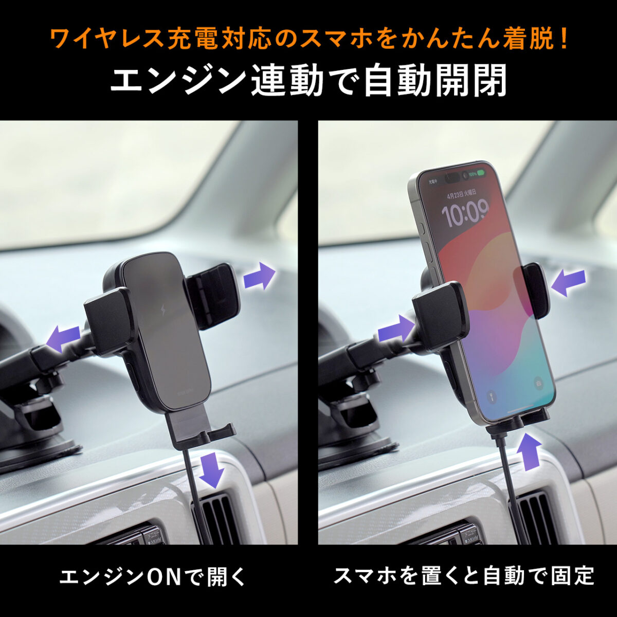 サンワサプライ株式会社は、ワイヤレス充電&自動開閉アーム搭載の車載ホルダーを発売した。