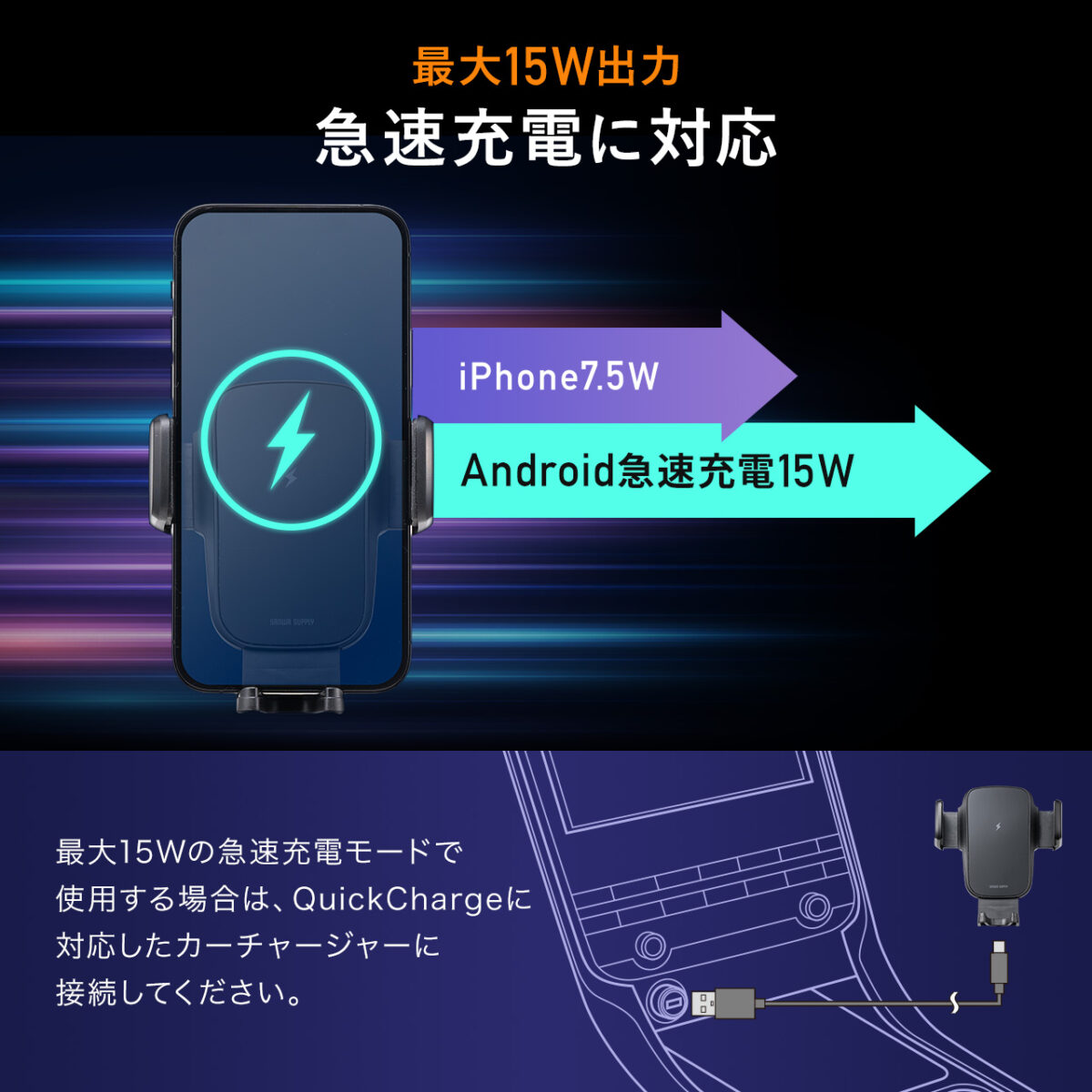 車載ホルダー ワイヤレス充電 自動開閉 吸盤取り付け エアコン取り付け 最大15W 急速充電 スマートフォン iPhone Android