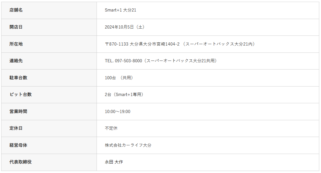 株式会社オートバックスセブン(代表取締役 社長:堀井勇吾)は、クルマのキレイを守る専門店「Smart+1大分21」を、大分県大分市にあるスーパーオートバックス大分21内に、2024年10月5日(土)にオープンします。