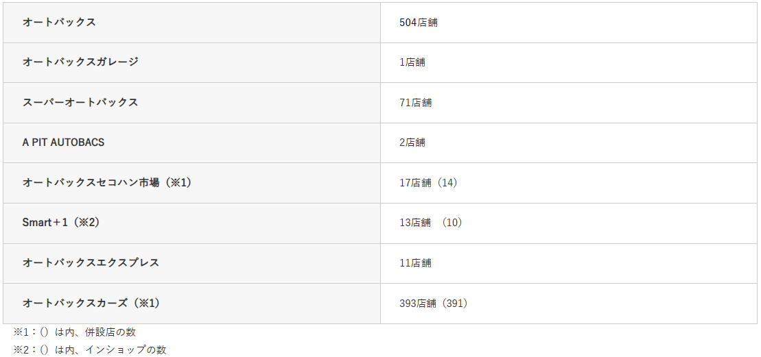 ご参考:オートバックスグループ国内店舗数 計1,012店舗 (2024年10月5日時点)