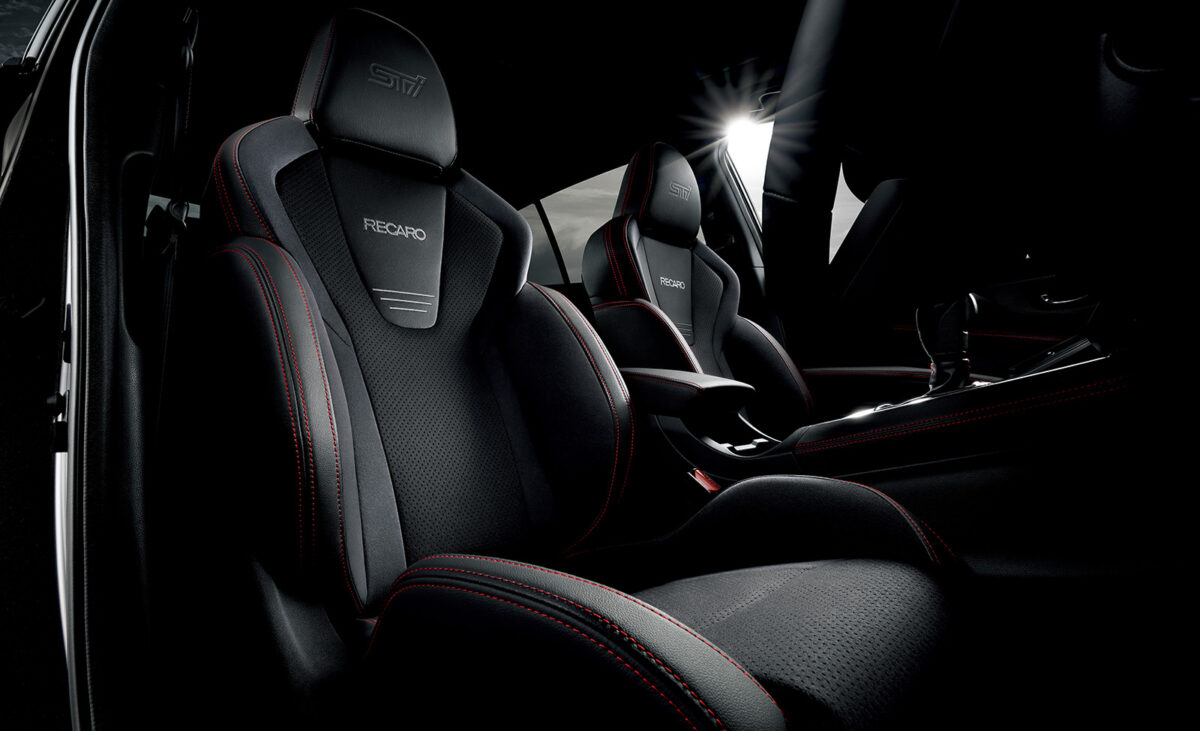 今回、特別仕様車「STI Sport R-Black Limited」に、1.8L直噴ターボエンジン搭載モデルを追加しました。「STI Sport EX」をベースに、インテリアには、ブラックルーフ&ピラートリムやウルトラスエード®シート(RECARO®*2フロントシート、STIロゴ入り)を採用。日常の扱いやすさの中に、スポーティな走りへの期待感をさらに掻き立てるモデルに仕上げました。