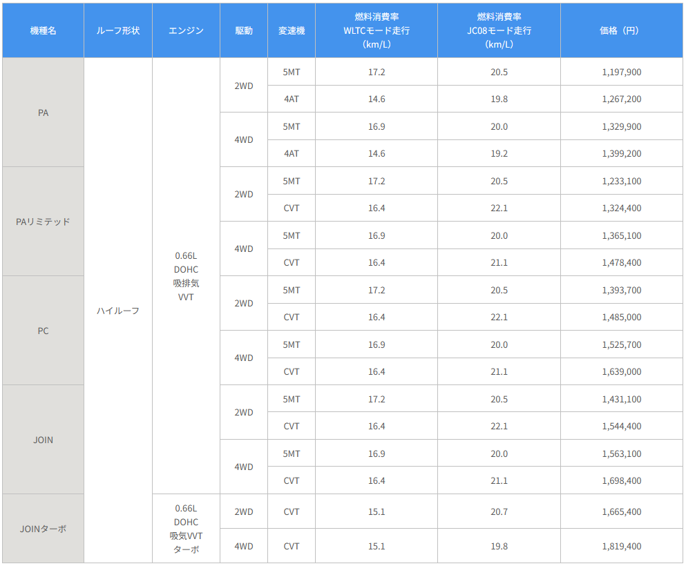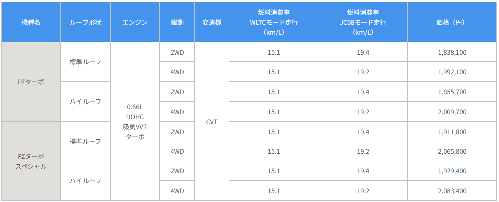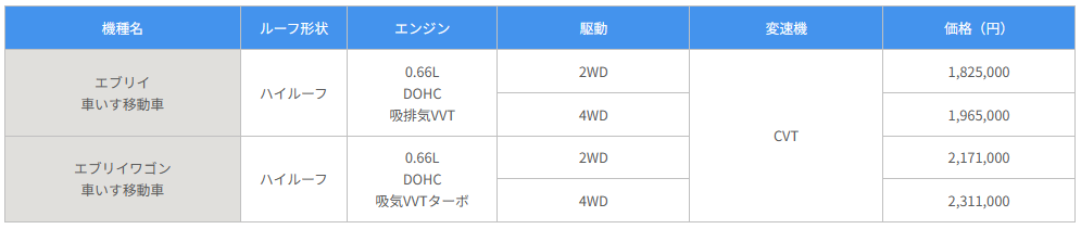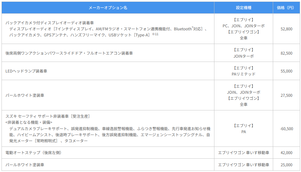 (消費税10%込み。エブリイワゴン 車いす移動車のメーカーオプションは消費税非課税)