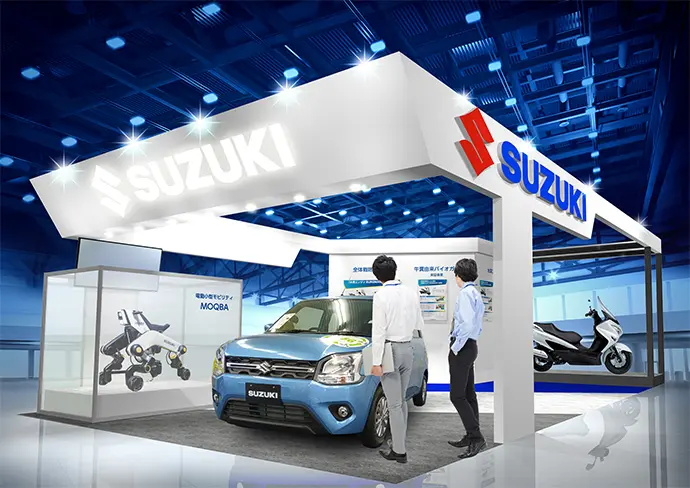 今回のブースでは、スズキの2030年度に向けた成長戦略やマルチパスウェイでのカーボンニュートラルへの取り組み、より多くの方に移動するうれしさをご提供する小型モビリティを実機展示やパネル、動画などでご紹介します。