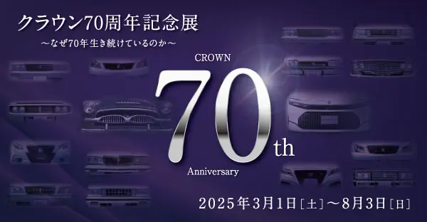 トヨタ自動車株式会社は、2025年3月1日(土)~8月3日(日)の期間中、トヨタ博物館にて企画展「クラウン70周年記念展~なぜ70年生き続けているのか~」を開催すると発表した。