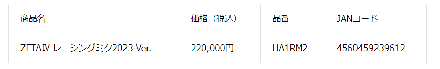「ZETAⅣ レーシングミク2023 Ver.」2024年3月までの期間限定で受注を開始