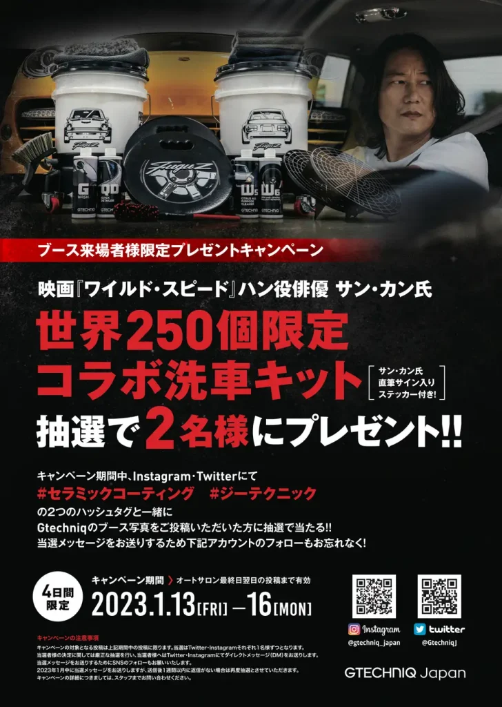 【東京オートサロン2023来場者様限定】映画ワイルド・スピードのハン役俳優とジーテクニックコラボ世界250個限定洗車キットを抽選でプレゼント