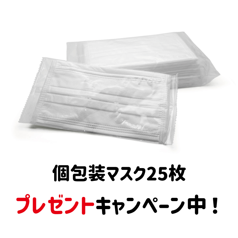 衛生的で持ち運びやすい個包装マスクをプレゼント。