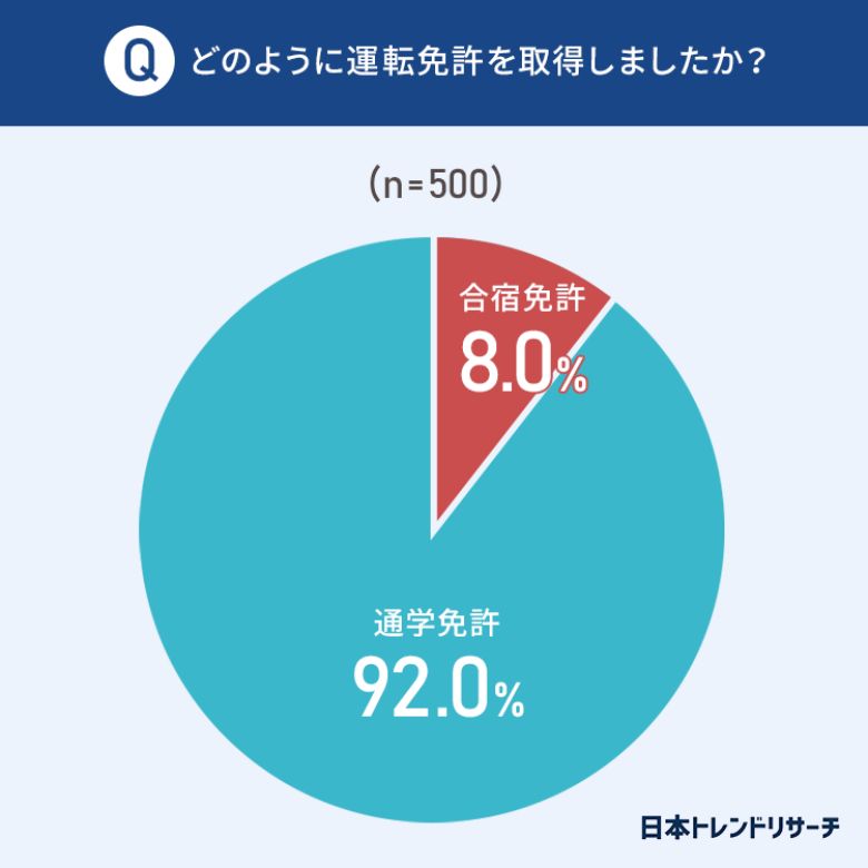 まずは、普通自動車運転免許を取得したことがある全国の男女500名の方に、どのように運転免許を取得したかについて聞いた。