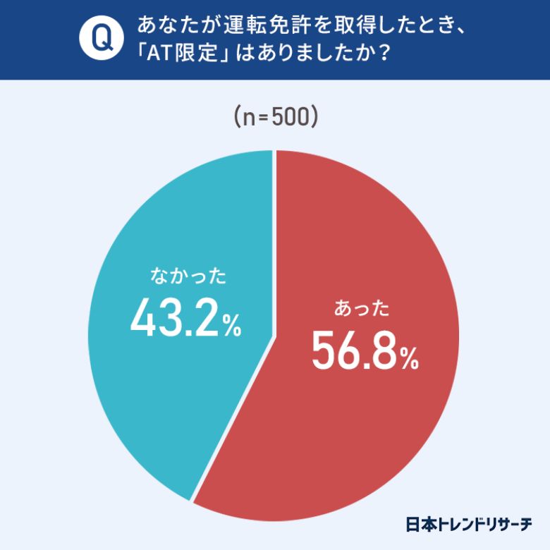 続いて、免許を取得したときに「AT限定」があったかについて聞いた。
