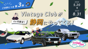 「Vintage Club by KINTO」では、旧車に関する様々なサービスを企画しております。今後も全国各地に期間限定でめぐり、コミュニティを通じて旧車の魅力を発信していきます。ぜひ今後の「Vintage Club by KINTO」の展開にもご期待ください。