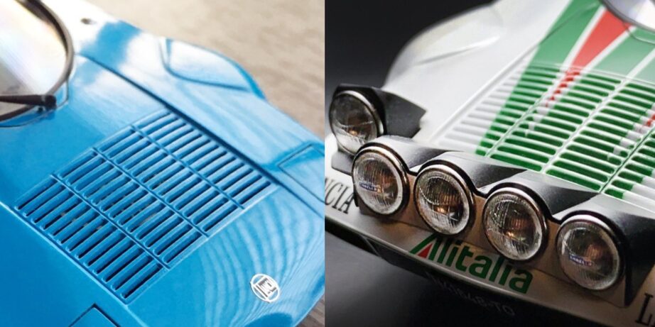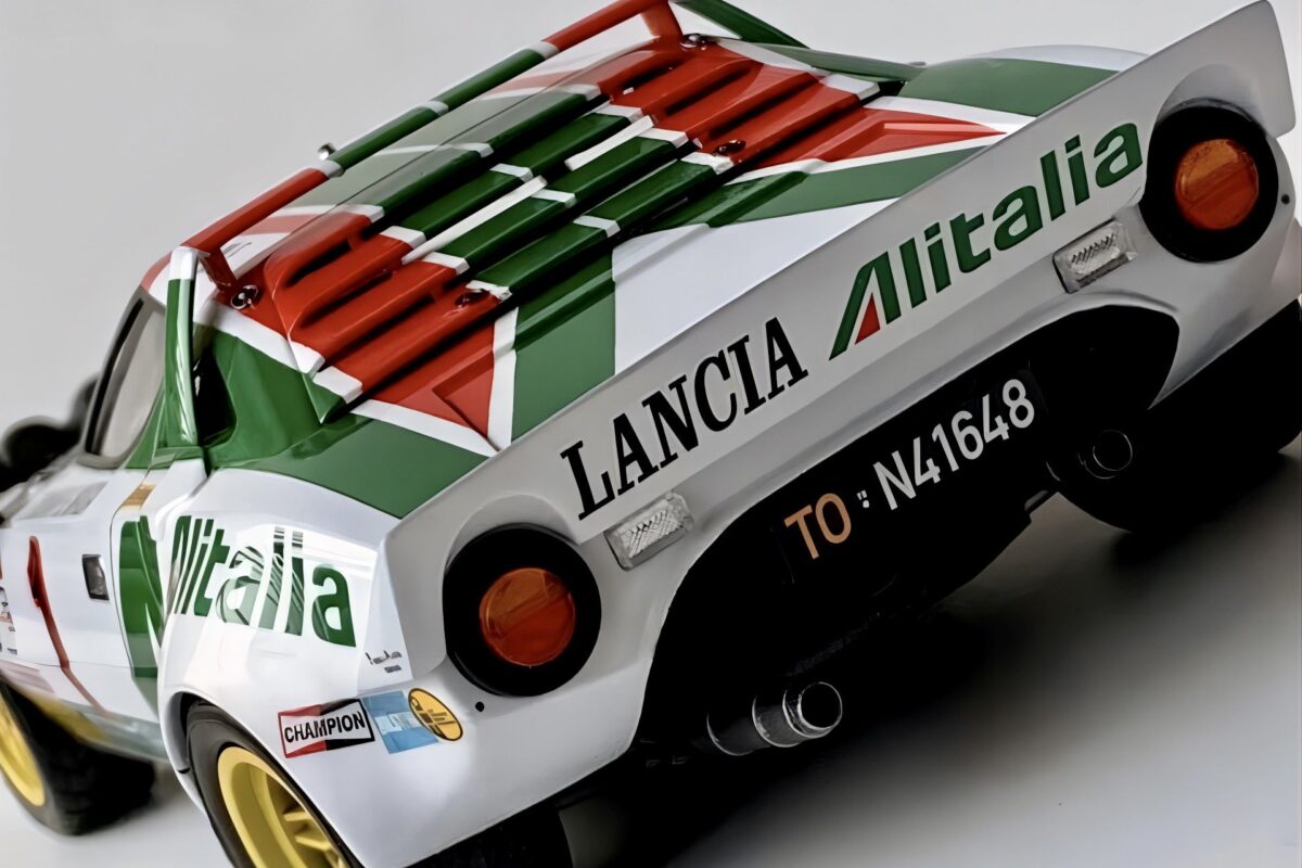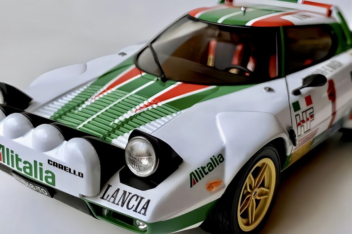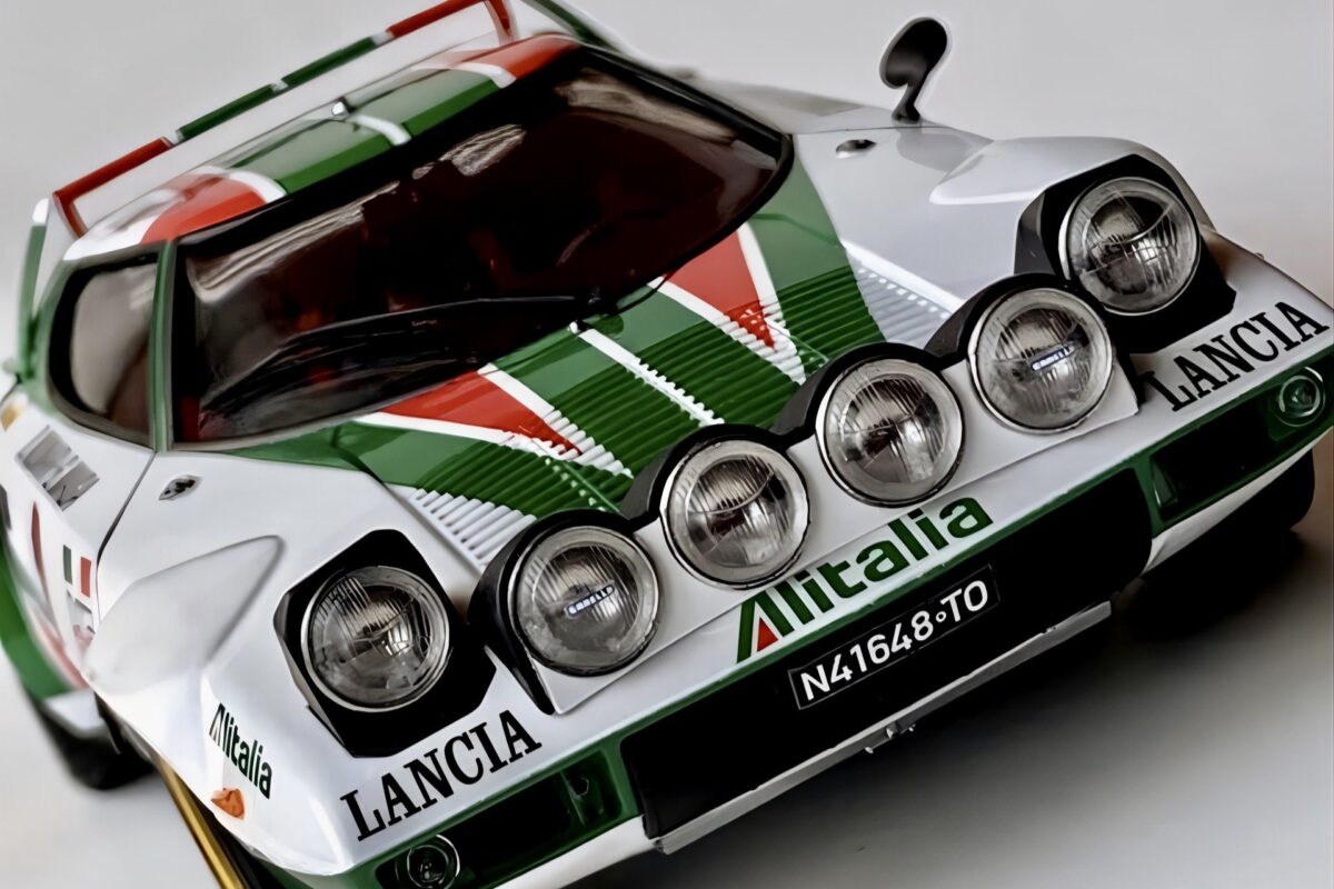 スケールモデルも人気で、現在は主に2社から発売されています。タミヤは「1/24 ランチア ストラトス ターボ」として、完全武装のラリーマシンをキット化。迫力満点の4連ライトポッドや、無骨で繊細なボンネットスリット、そして鮮烈なアリタリアカラーまで、“戦うクルマ”をしっかり再現しています。