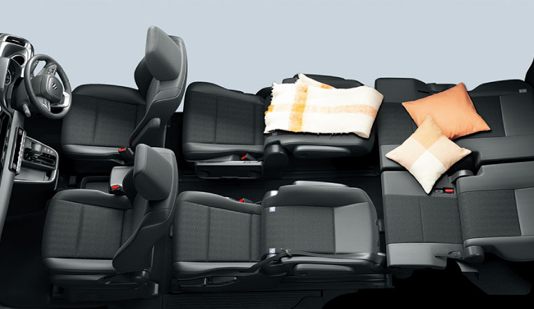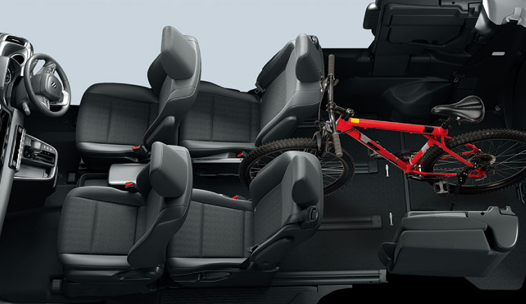 全長4,695mm、全幅1,730mmのボディーサイズに、室内のセカンドシートスライド量を700mm以上確保したほか、サードシートは片手でワンタッチ格納できるワンタッチホールドシート(5:5分割サードシート)の採用により、多彩なシートアレンジが可能です。これらの組み合わせにより、幅広い使い方ができる自由度の高い室内空間を実現しています。