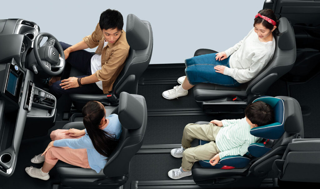 また、両側のスライドドアには携帯リモコンを身につけている状態でフロントドア下のセンサー部に足先をかざすだけで開閉ができるハンズフリーデュアルパワースライドドア[ワンタッチスイッチ、挟み込み防止機構付]や、バックドアには開閉途中の位置に止めることができるフリーストップバックドア※1を採用するなど使い勝手のよい装備が充実しています。