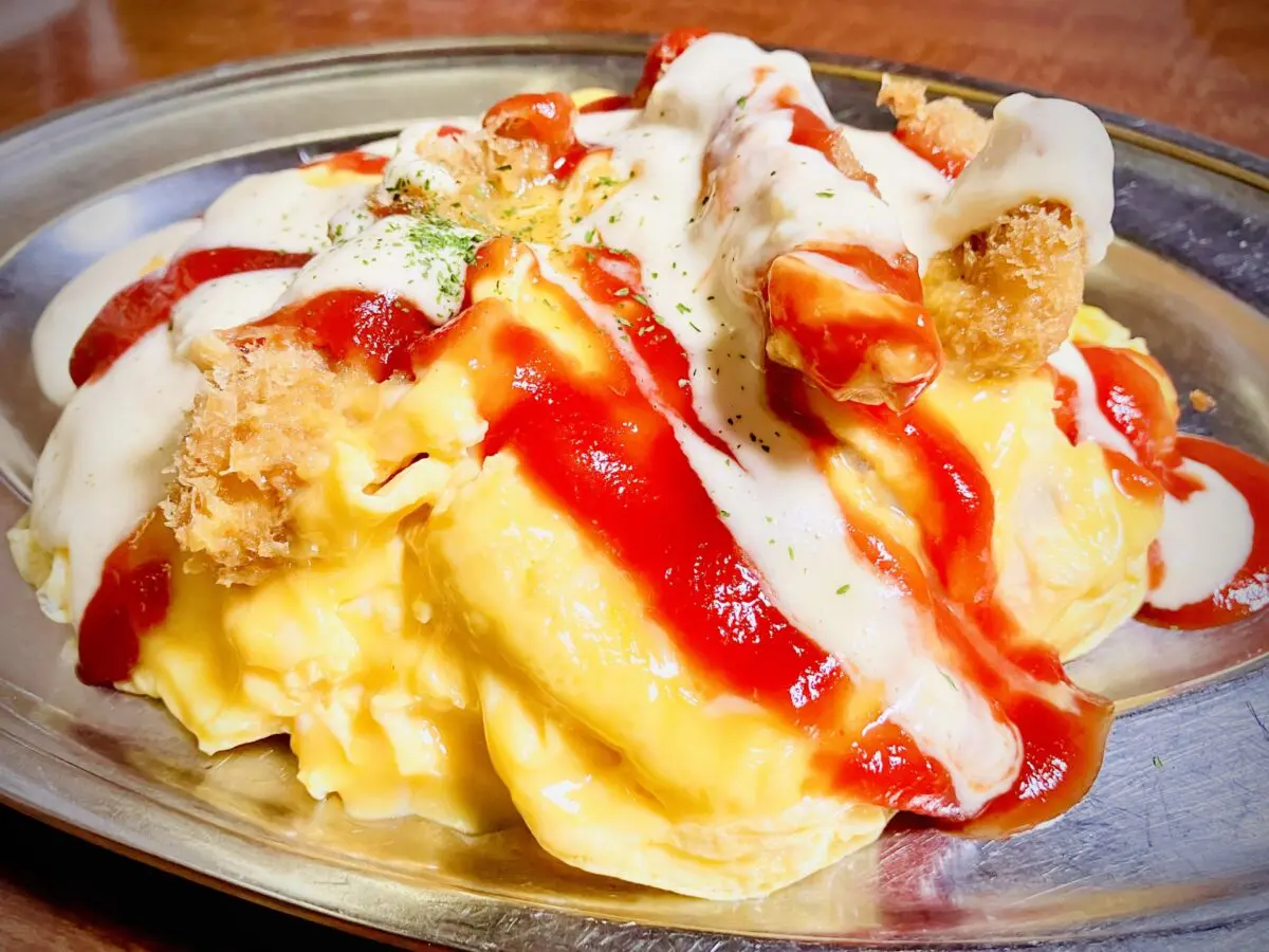 「グリルオーツカ」は、ハントンライスの元祖として知られる金沢市内の老舗洋食店です。ふわふわのオムライスに、白身魚のフライが豪快にトッピングされ、タルタルソースとケチャップがたっぷりかかった一皿は、一度食べたら忘れられない美味しさです。観光客だけでなく、地元の人々にも愛され続けている味わい深い地元グルメです。