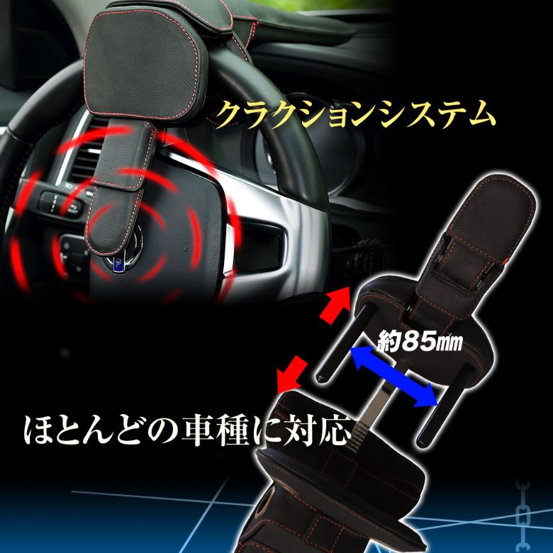無理に外そうとすればクラクション部に圧がかかり、周囲に盗難を知らせれるように設計。2本のロックポール幅は85mmなので、ほとんどの車種に取り付け可能。また、ハンドルカバーを取り付けた状態でも施錠可能になっている。