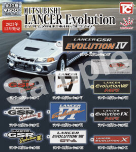 株式会社ジュウロクホウイは、三菱自動車工業株式会社監修のもと、歴代ランサーエボリューションのカーエンブレム、㏚ロゴを重厚なメタル素材で精巧に再現したキーホルダ―を、2023年12月から順次、一般小売店カプセルトイ売場(通称:ガチャガチャ)にて発売を予定している。