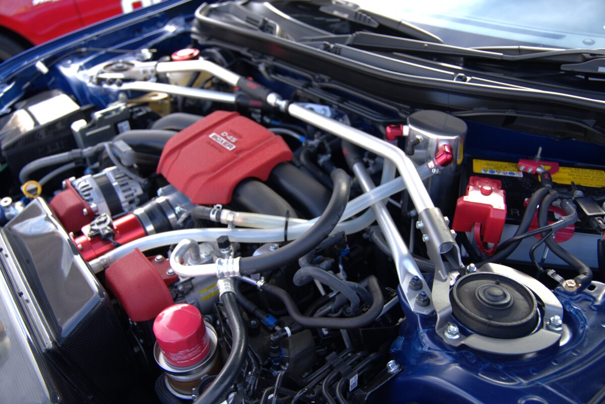 このエンジンルームが周りから好評で、大黒PAなどクルマ好きが集まるスポットに行ってボンネットを開けていると外国人のギャラリーが集まってきます笑。