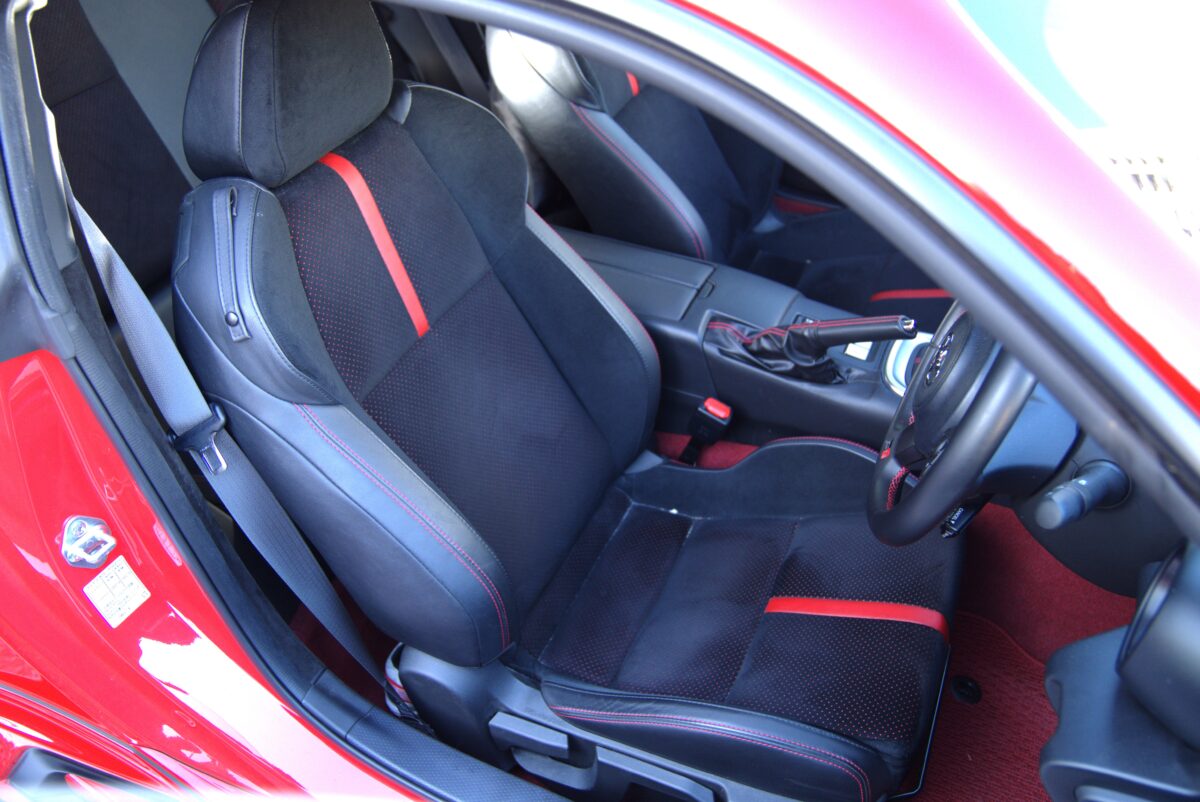 「RZグレード専用設定の赤いラインが入ったシートに換装しています。純正流用ですがホールド性はすごく高いです。