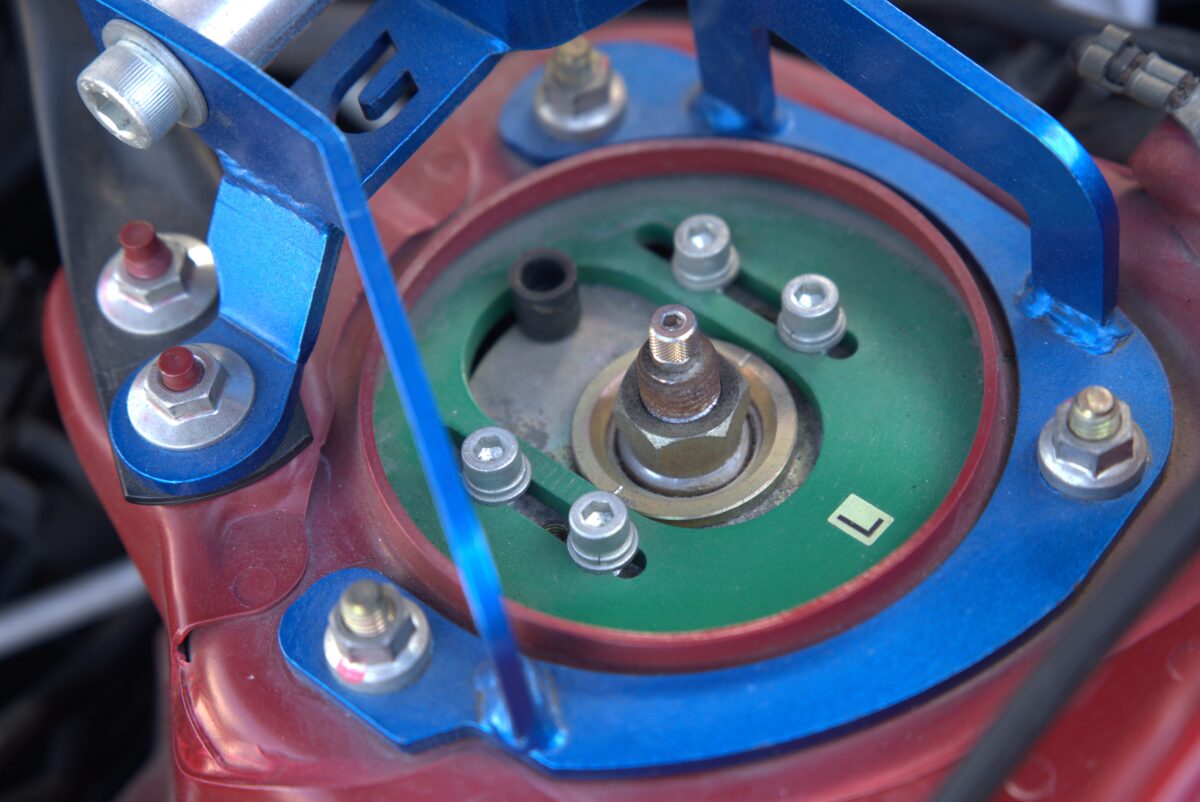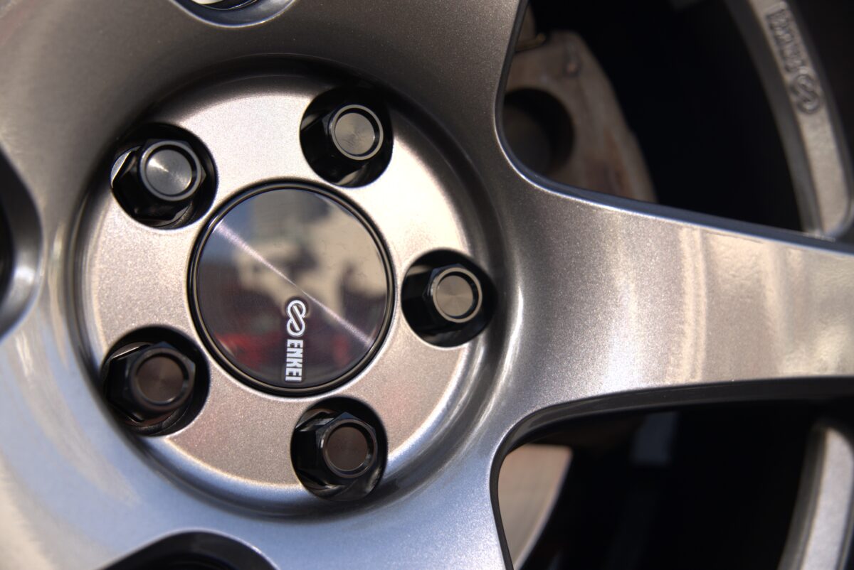 「ホイールはエンケイ。純正ホイールはスポークがV字になっていて洗車が大変なんです。でもこのホイールは5本スポークでシンプルデザインなので洗いやすくて助かっています笑。車高調は購入時から装着されていたテインです」