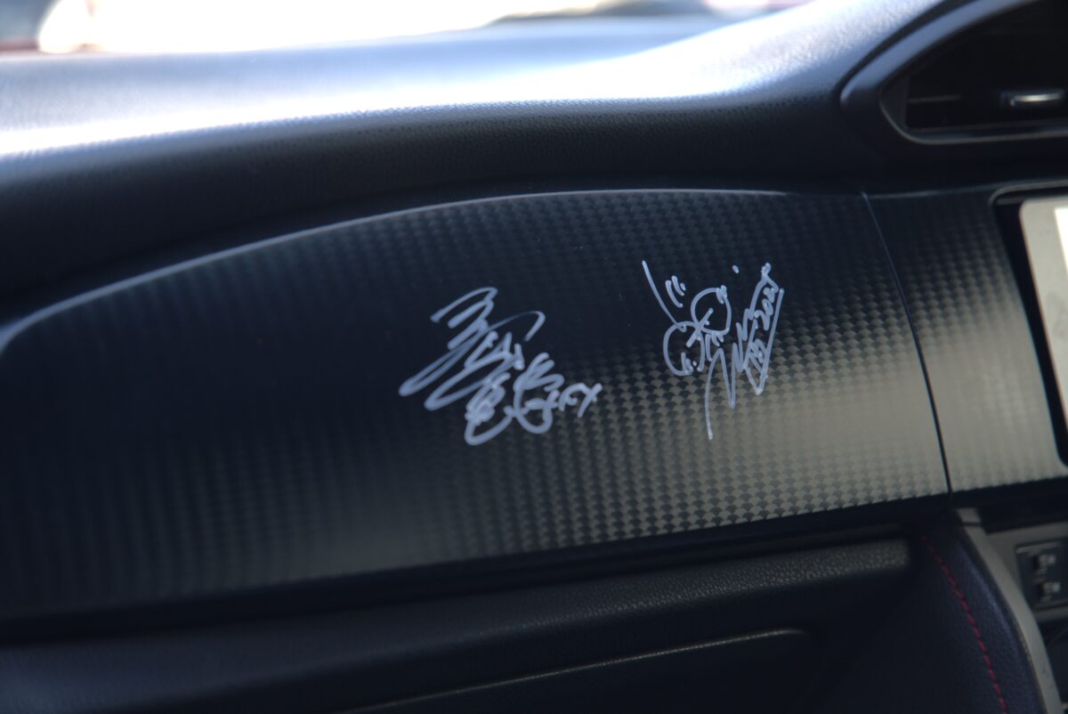 「アニメ『頭文字D』で藤原拓海を演じていた声優の三木眞一郎さんと、『MFゴースト』の音響監督・三間雅文さんとお会いする機会があり、ダッシュボードにサインしていただきました。唯一無二の宝物です」