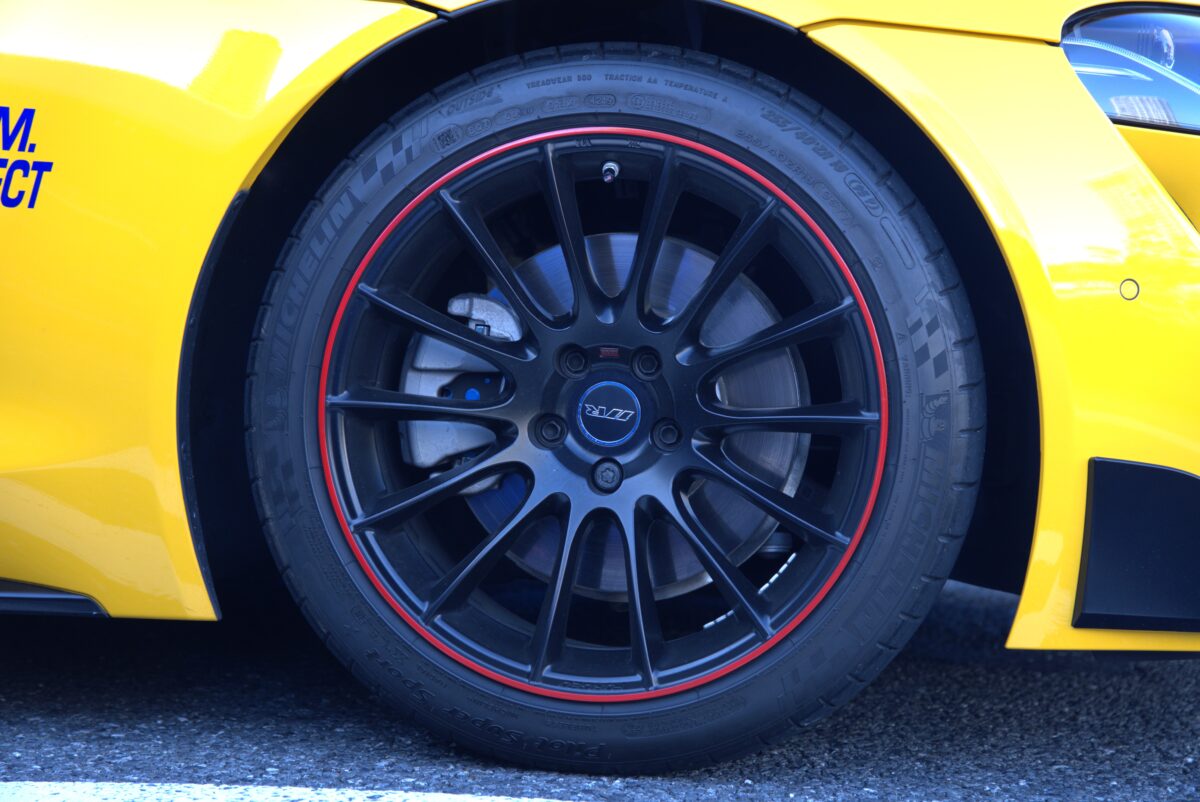 「ホイールはWEDSの11Rです。レーシングドライバーでSUPER GTのチーム監督でもある脇阪寿一さんがプロデュースした鍛造ホイールで、GRガレージでしか購入できない専売品なんです」