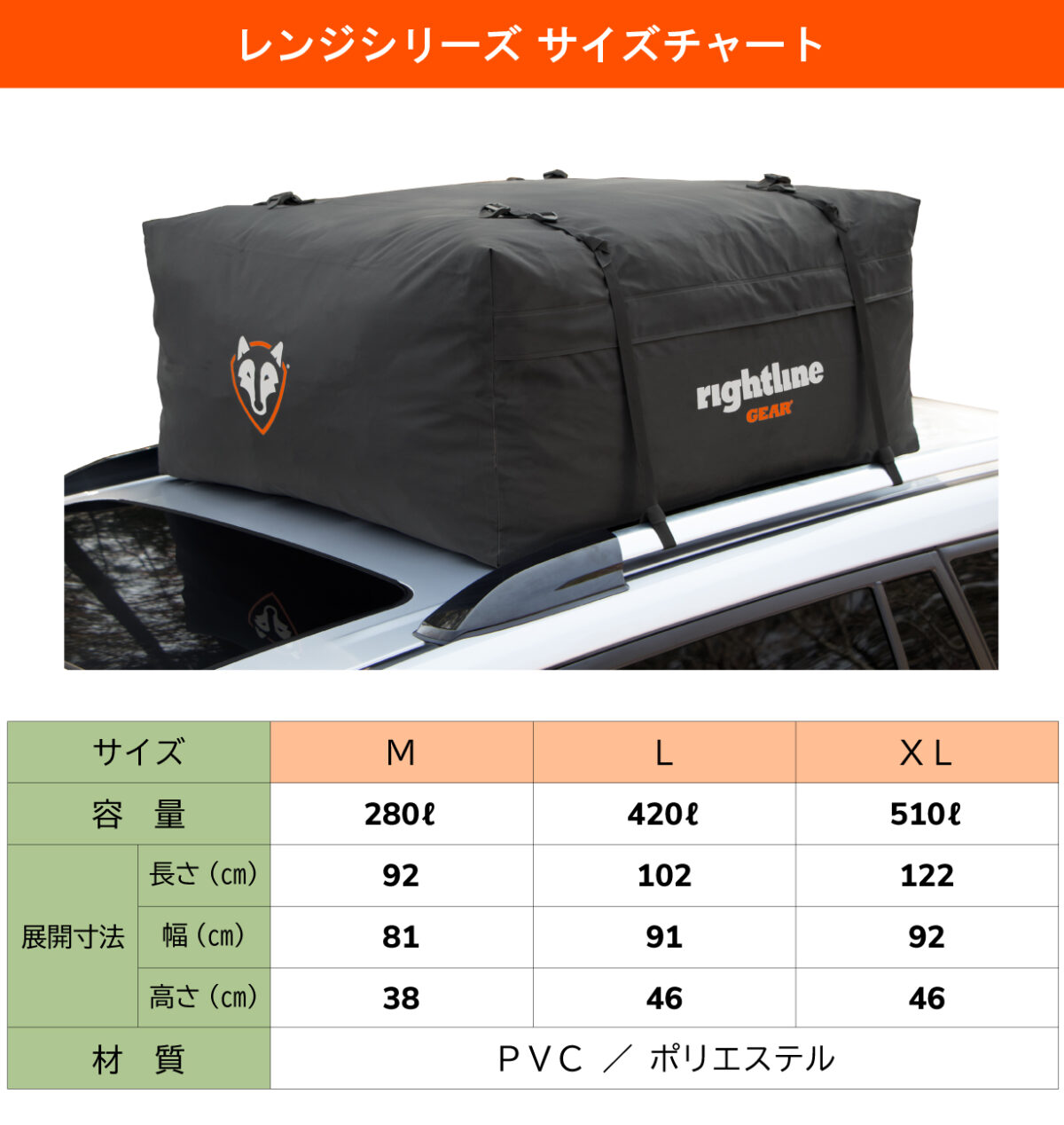 Mサイズ(280L)、Lサイズ(420L)、XLサイズ(510L)の3サイズがあります。