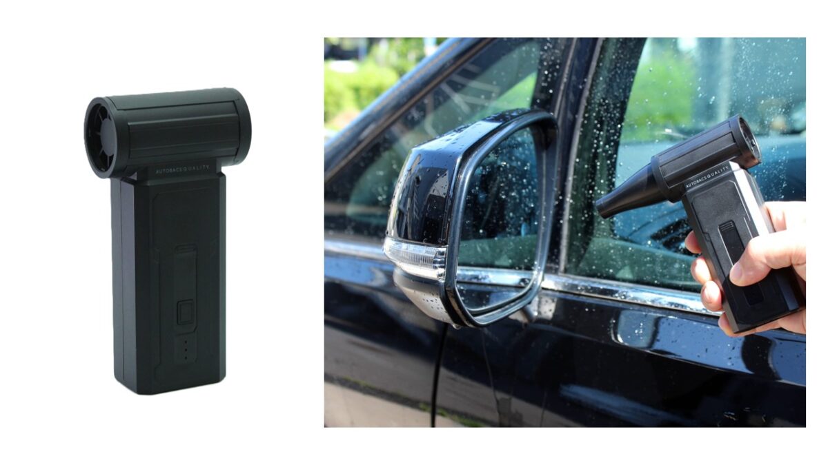 ■ 「AQ. ハイパワーブロアーmini」は、小型でも強力な風圧により、洗車後の拭き取りにくい隙間に残った水滴などをスピーディに除去します