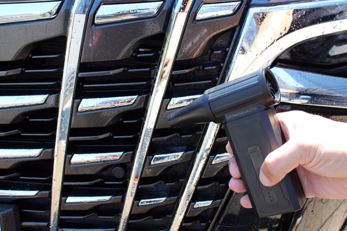 拭き取りにくいグリルにたまった水滴もラクに除去できます。車内のホコリ飛ばしにも活用可能。