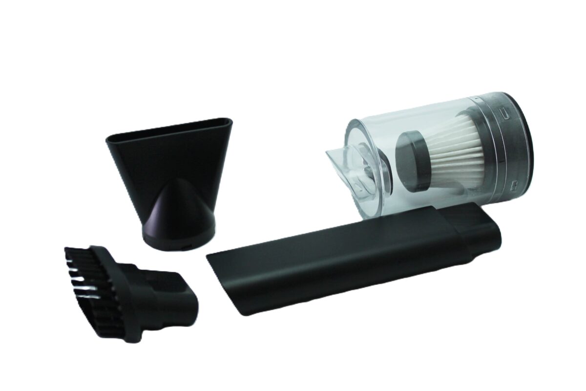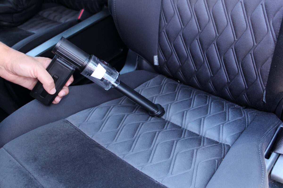 1つ目はハンディクリーナーとしての使用。コンパクトで取り回ししやすく、手軽に車内清掃が可能です。強力な吸引力によりホコリや小さなゴミを吸い込みます。